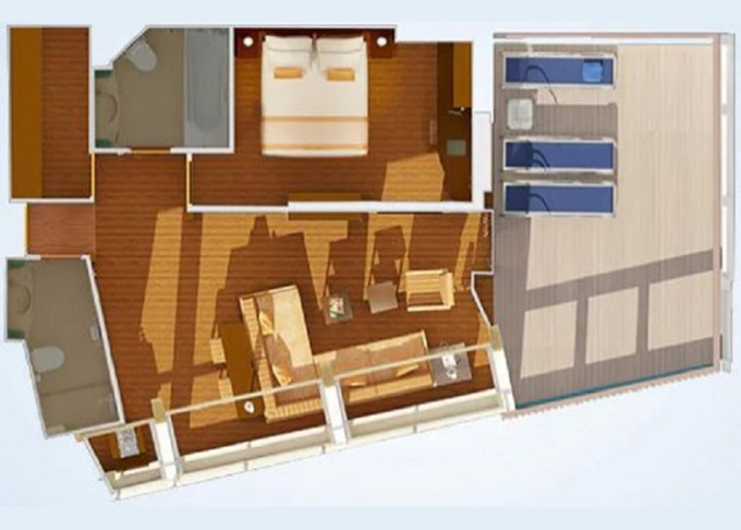 | OS - Ocean Suite 26 m²/ balkón 6 m². 7. paluba vpredu, stred. Max 4 osoby. Výhody Suite. | 7 074 € 3 537 € za osobu |