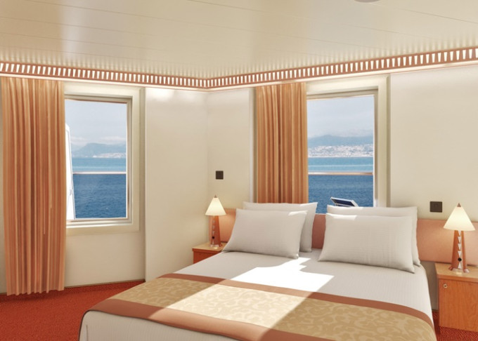 | 6K - Vonkajšia kajuta Grand Scenic 29 m². Veľké panoramatické neotvárateľné okná. 9. paluba vpredu. | 1 378 € 689 € za osobu |