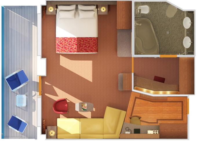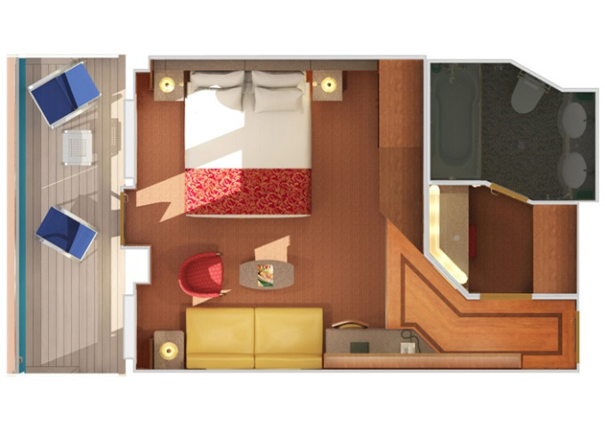 | OS - Ocean Suite 26 m² + balkón 6 m². 7. paluba stred, vpredu. Max 4 osoby. Výhody Suite. | 2 428 € 1 214 € za osobu |