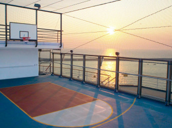 - Využívanie fitness centra, sauny, bežeckej dráhy, bazénov, víriviek, tobogánov a vodného parku (na vybraných lodiach), mini golf, basketbal, volejbal, stolný tenis, knižnica