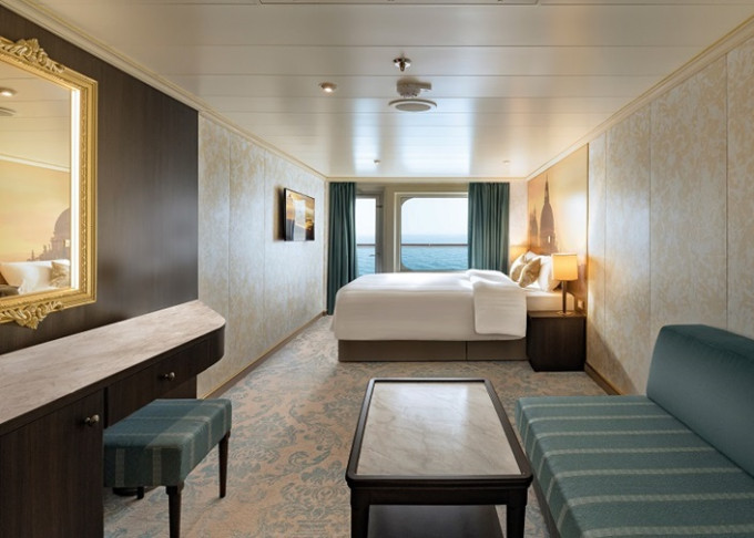 | 6L - Kajuta s neotvárateľným oknom Deluxe (obmedzený výhľad) 19,5 m². Neotvárateľné okno (obmedzený výhľad). 1,2,3. paluba. | 2 164 € 1 082 € za osobu |