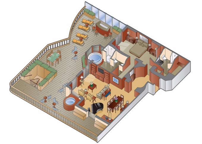 | CS - Celebrity Suite 44 m² + balkón 8 m². Kúpeľňa s vírivkou. 6. až 9. paluba. Max 3 osoby. Výhody Suite The Retreat. | 21 924 € 7 308 € za osobu | ||
