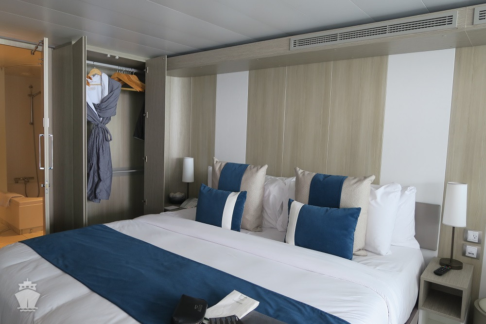 - Kajuty sú umiestnené v blízkosti lodného Spa. K ich vybaveniu patrí posilnený systém vzdušnej filtrácie, posteľ Queen-Size (v kategóriách Edge King-Size), veľké zasúvacie sklenené dvere, exkluzívne posteľné prádlo eXhale®, veľkorysé skladovacie priestory.