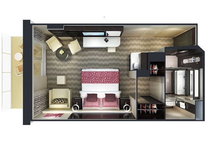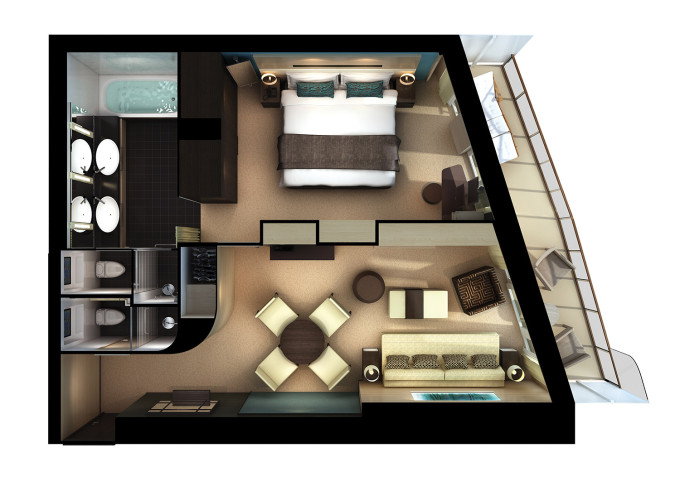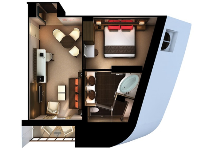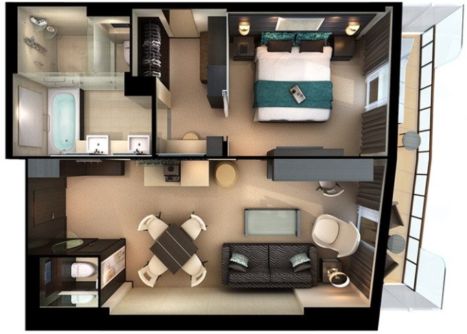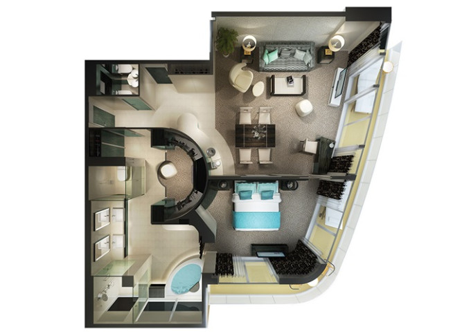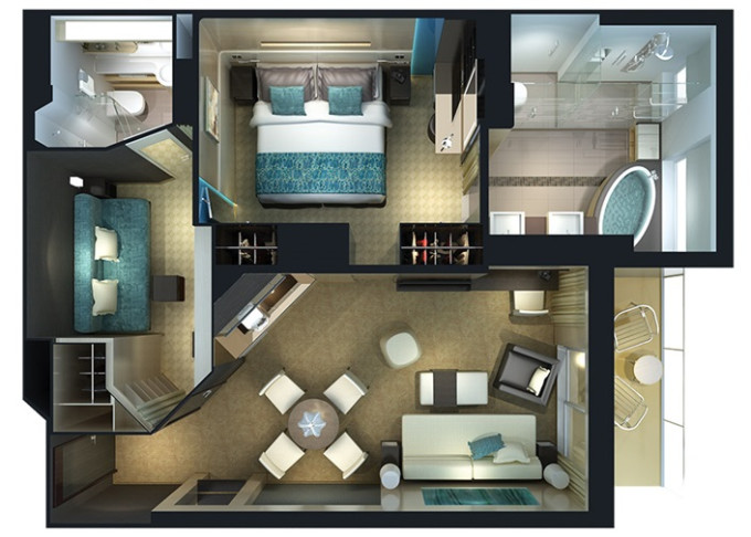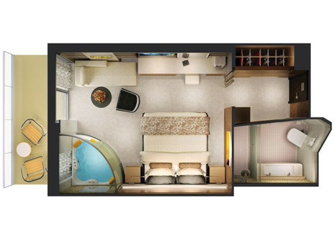| H3 - The Haven Deluxe Owner's Suite 53 m² / balkón 9 m². 16. paluba - vpredu. Max 4 osoby. Výhody The Haven. | 17 080 € 8 540 € za osobu |