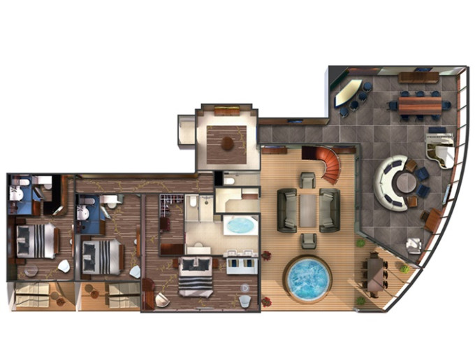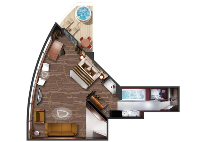 | H3 - The Haven Deluxe Owner's Suite 76 m² / balkón 14 m². 10. paluba - vpredu. Max 4 osoby. Výhody The Haven. | 21 638 € 10 819 € za osobu |