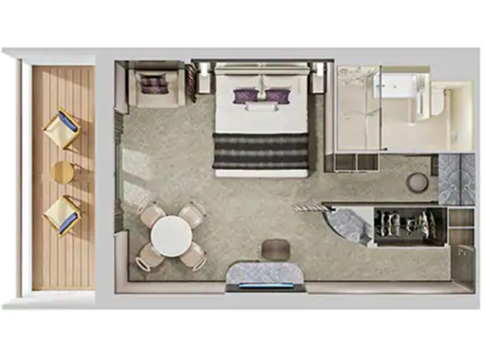 | SD - Forward-facing Deluxe Penthouse 46 m² / balkón 13 m². 10. paluba - vpredu. Max 4 osoby. Výhody Club. | 10 996 € 5 498 € za osobu |