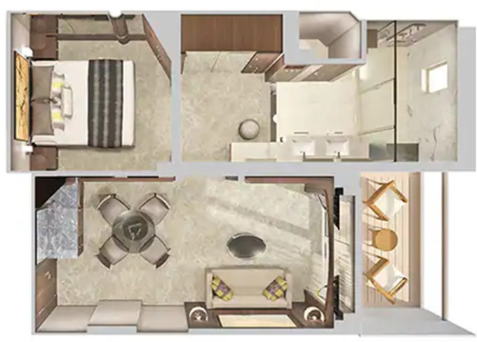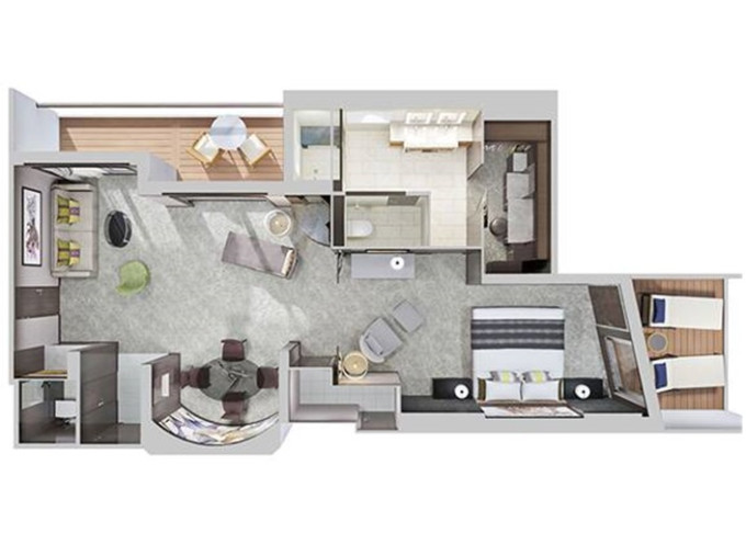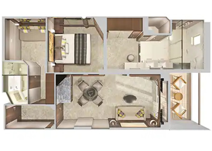 | S4 - Deluxe Family Suite - 2 spálne 50 m² / balkón 5 m². 11. paluba - vpredu, stred. Max 6 osôb. Výhody Club. | 7 084 € 3 542 € za osobu |