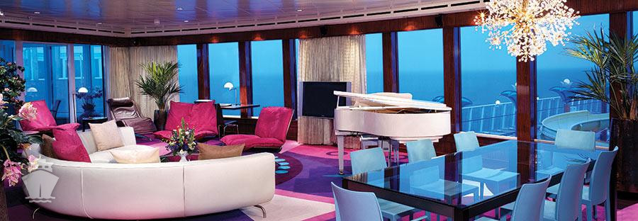 | H4 - The Haven Owners Suite 73 m² / balkón 23 m². 8. paluba - vpredu. Max 4 osoby. Výhody The Haven. | 14 716 € 7 358 € za osobu |