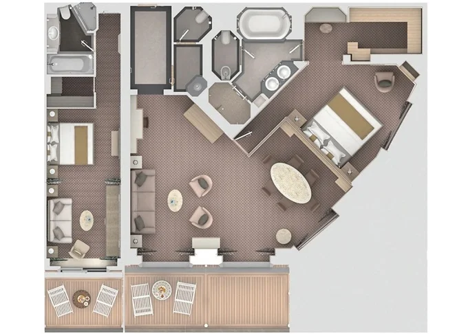 | S2 - Silver Suite 2 92 m² + 12 m². Silver Suite SL spojená s Panorama Suite PA. 9,10,11. paluba. Max 5 osôb. | 69 200 € 69 200 € za osobu |