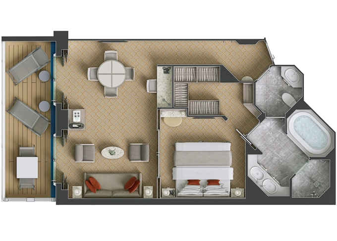 | SV - Superior Veranda Suite 30 m² + balkón 6 m². 7,8,9. paluba. Max 3 osoby. | 19 050 € 19 050 € za osobu |