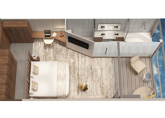 | SU - Ultimate Sky Suite s balkónom Infinite 26 m² + balkón Infinite 7,5 m². Spálňa s obývacou časťou, kúpeľňa s vírivkou a sprchou. 6. paluba. Max 2 osoby. | 26 266 € 13 133 € za osobu | ||