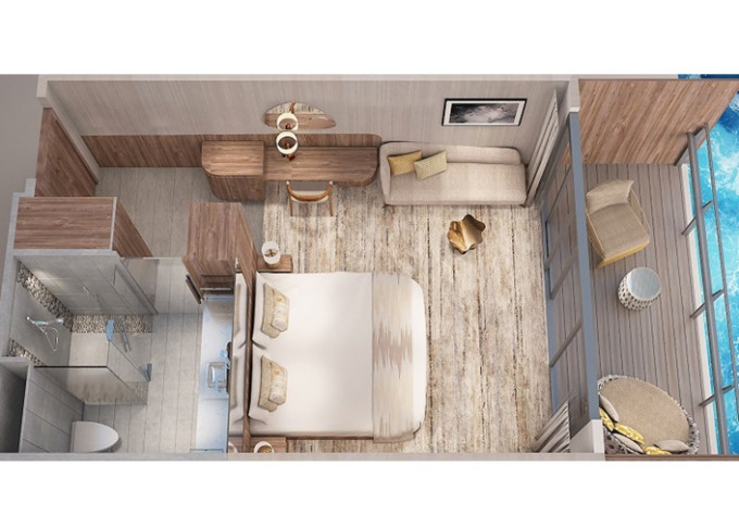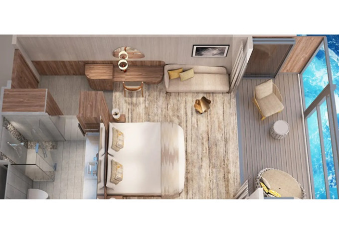 | S1 - Sky Suite 23 m² + balkón 8 m². Spálňa s obývacou časťou, kúpeľňa so sprchou. 5. paluba. Max 2 osoby. | 36 864 € 9 216 € za osobu | ||