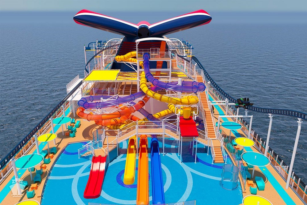 6. Ultimate Playground na 18. až 20. palube nie je iba pre deti! Vzrušujúca BOLT Ultimate Sea Coaster, dlhá 243 m, s rýchlosťou vyše 60 km/hod a vo výške 57 m nad hladinou mora je prvou horskou dráhou na mori vôbec! Okrem toho tu nájdete vodný park WaterWorks s toboganmi; 182 metrovú lanovú dráhu a športovú zónu SportSquare s minigolfom, ping-pong a poly-pong stolmi, twisterom, skybiliardami, basketbalovým ihriskom.