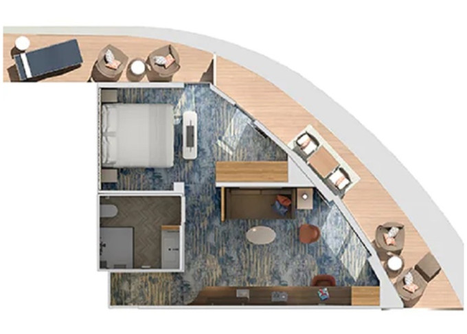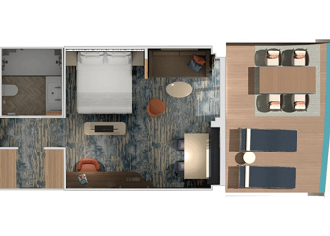 | HU - Suite Havana Cabana Corner 33 m² + vonkajšie rohové patio 15 m². 8. paluba vpredu. Max 3 osoby. Tropický štýl, vstup do exkluzívnej zóny Havana. Výhody Suite. | 4 496 € 2 248 € za osobu | ||