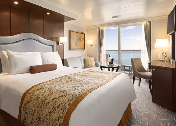 - Owner’s Suites: súkromný obed v apartmáne od 12:00 do 14:00 (voliteľné) v deň nalodenia