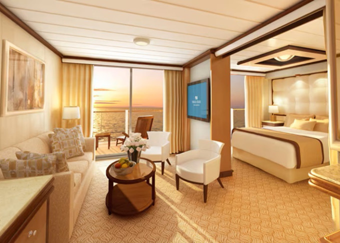 | S2 - Owner Suite s balkónom 81 m² (vrátane balkóna). Max 3 osoby (gauč). Výhody Suite. | 6 662 € 3 331 € za osobu | ||