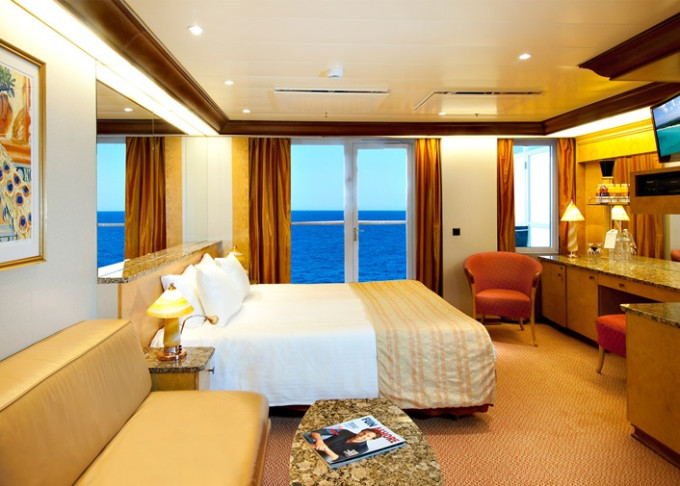 | OS - Ocean Suite 25 m² + balkón 8 m². 5. až 8. paluba vzadu. Výhody Suite. | 7 136 € 3 568 € za osobu | ||