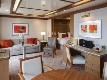 | R1 - Royal Suite 1 92 m² (vrátane balkóna 12 m²), Spálňa s obývacou a jedálenskou časťou. 7. paluba vpredu. Max 3 osoby. | 51 900 € 17 300 € za osobu | ||