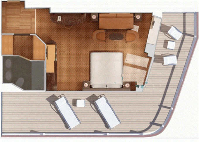| GV - Grand Vista Suite cca 53 - 68 m² vrátane balkóna. 4. až 8. paluba. | 2 546 € 1 273 € za osobu | ||