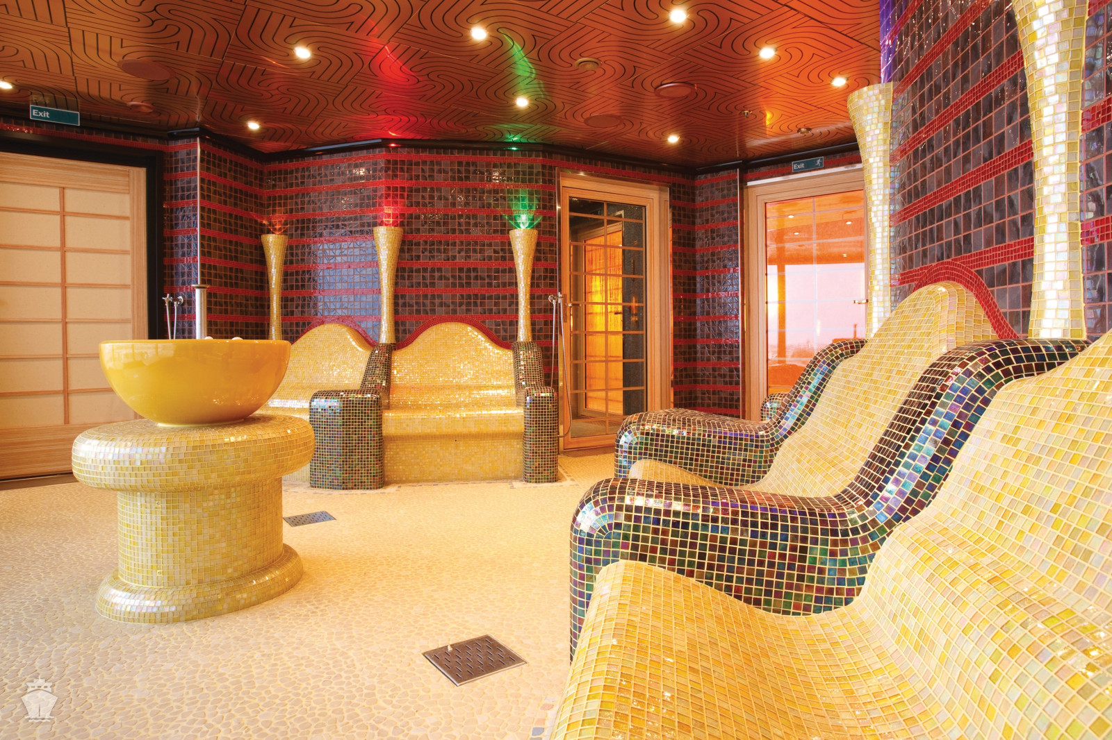 - Využívanie fitness centra, sauny, bežeckej dráhy, bazénov, víriviek, tobogánov a vodného parku (na vybraných lodiach), mini golf, basketbal, volejbal, stolný tenis, knižnica