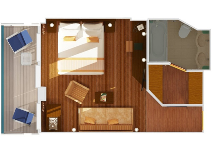 | OS - Ocean Suite 26 m² + balkón od 6 m². 5,7. paluba. Výhody Suite. | 1 846 € 923 € za osobu | ||
