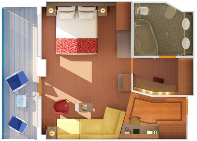 | 8S - Kajuta s balkónom Cloud 9 Spa 17 m² + balkón 3 m². 11. paluba vpredu. Voľný vstup do Spa a balíček Cloud 9 Spa. | 1 466 € 733 € za osobu | ||