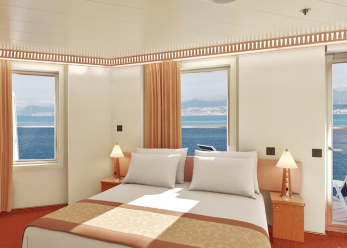 | GS - Grand Suite 32 m² + balkón 8 m². 7. paluba stred. Výhody Suite. | 2 606 € 1 303 € za osobu | ||