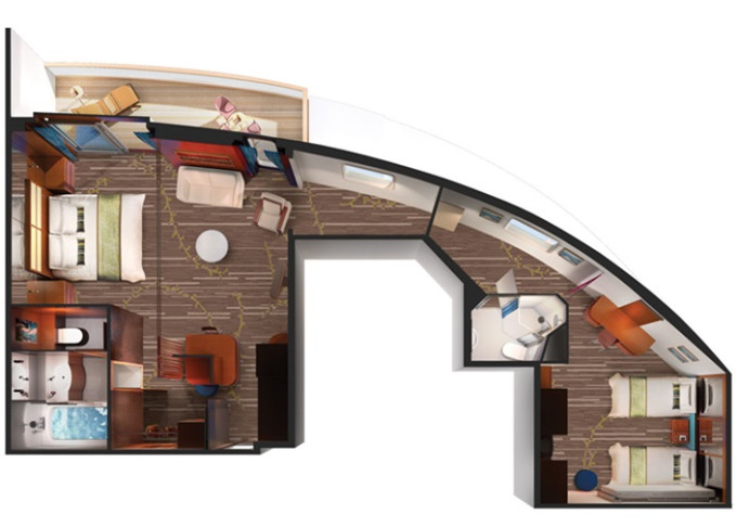 | S4 - Deluxe Family Suite od 56 m² / balkón 9 m². 9. paluba - vpredu. Max 5 osôb. Výhody Suite. | 22 132 € 11 066 € za osobu | ||