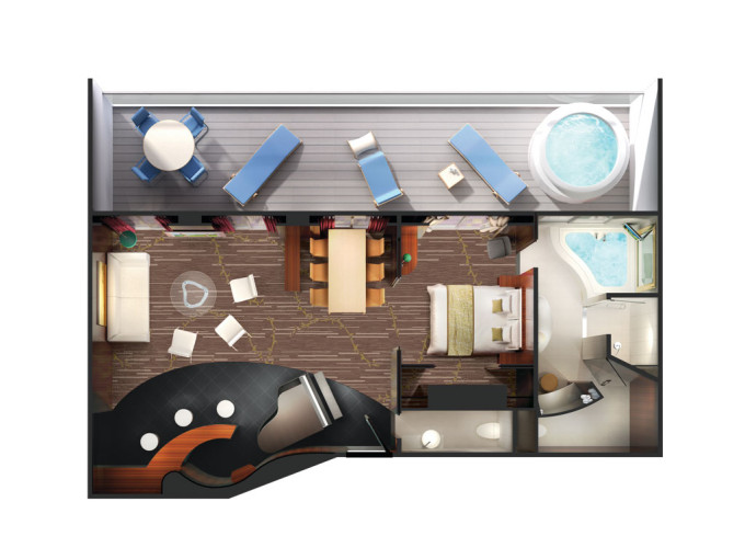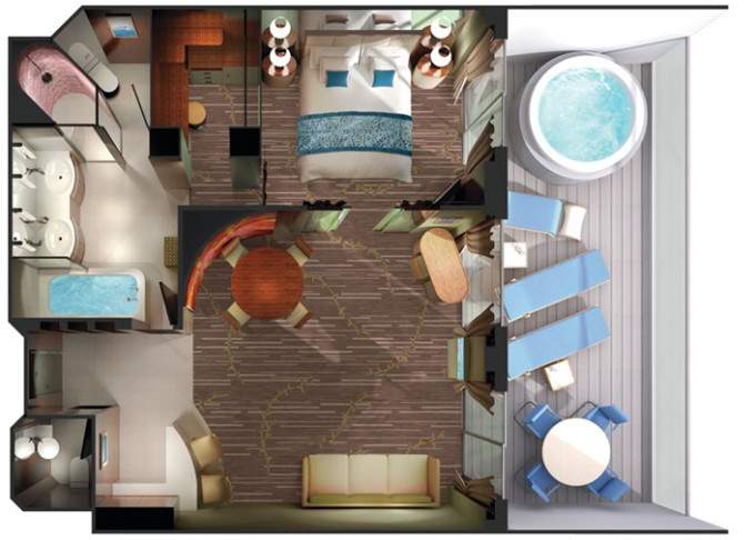 | S5 - Deluxe Owner's Suite 128 m² / balkón 45 m². 12. paluba - vpredu. Max 4 osoby. Výhody Suite. | 19 952 € 9 976 € za osobu | ||