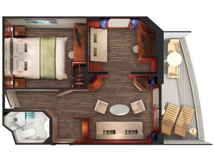 | SG -Family Suite Aft-Facing 31 m² / balkón 8 m². 7. až 10. paluba - vzadu. Max 3-6 osôb. Výhody Suite. | 12 432 € 6 216 € za osobu | ||
