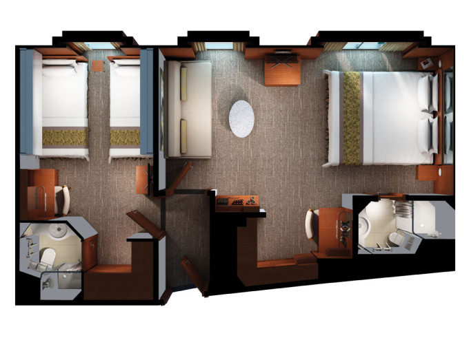 | SI - Family Suite - 2 spálne 45 m² / balkón 13 m². 13. paluba - vzadu. Max 5 osôb. Výhody Suite. | 11 522 € 5 761 € za osobu | ||