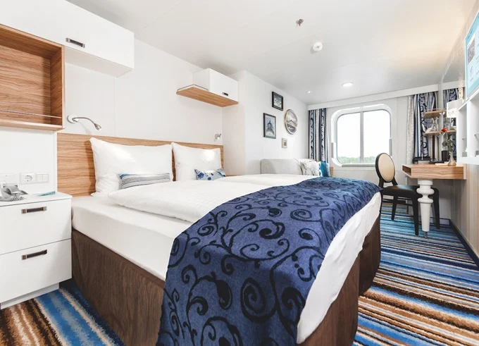 | AUAO - Kajuta s oknom kat. A 17 m². Neotvárateľné okno. 3,8. paluba. Max 4 osoby. | 5 448 € 1 362 € za osobu | ||